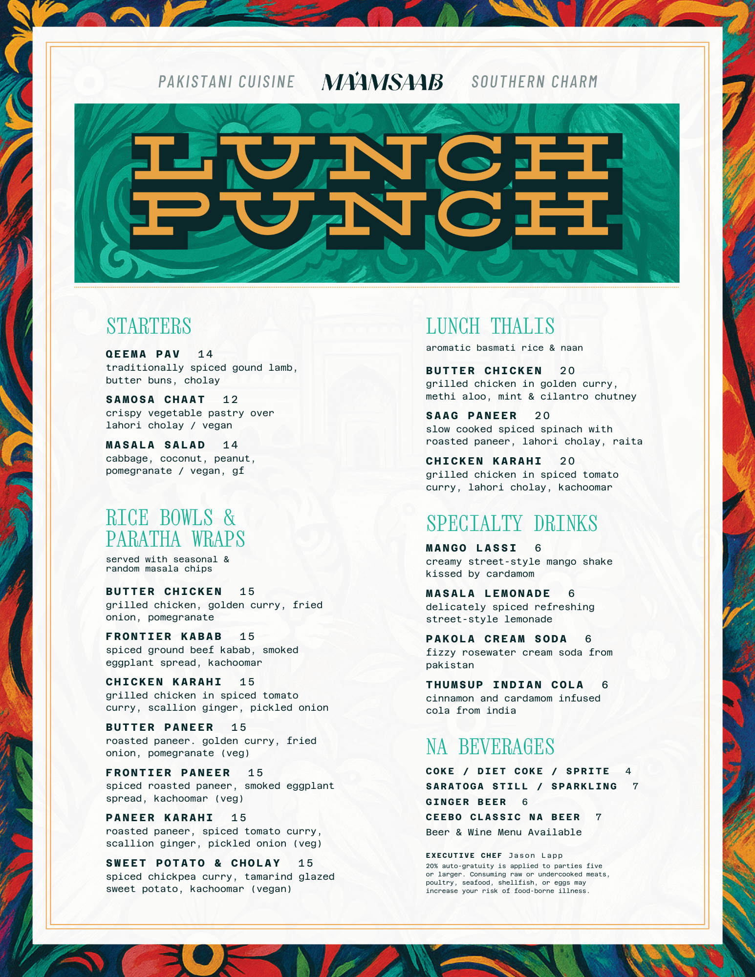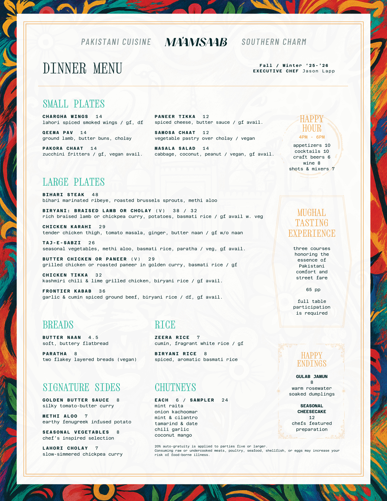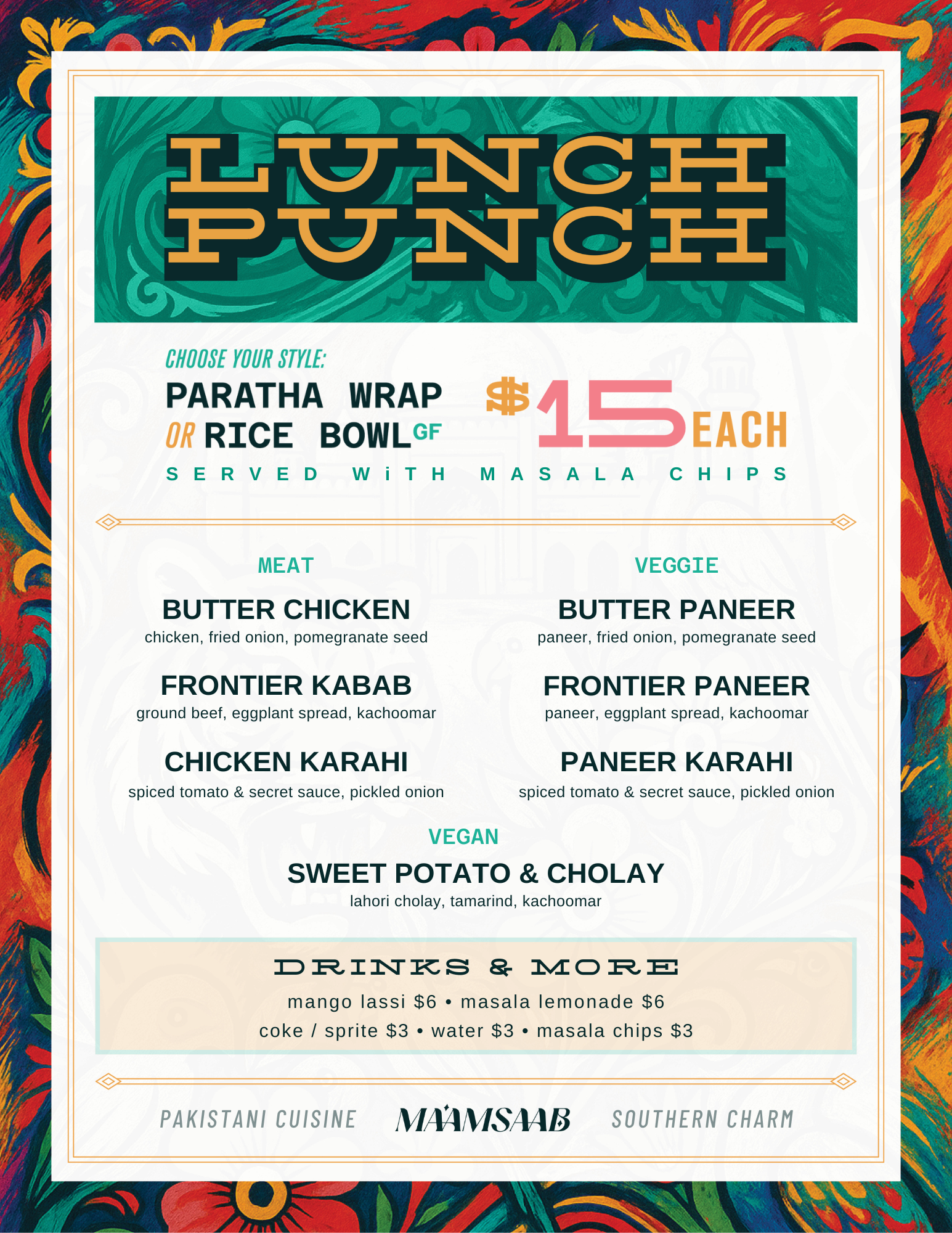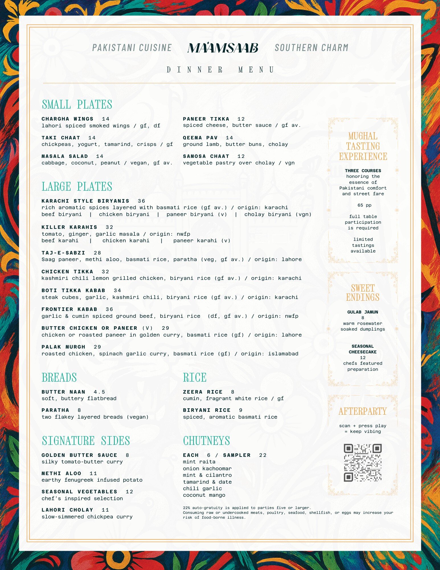 Nestled in the historic district of downtown Charleston, experience elevated Pakistani cuisine.